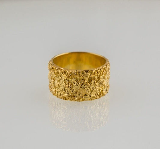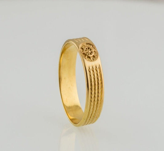 Gold Ring with Handweel Symbol Ornament Style Handmade Jewelry