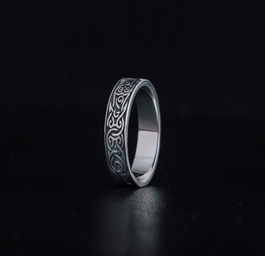 Ring with Norse Ornament Sterling Silver Viking Jewelry