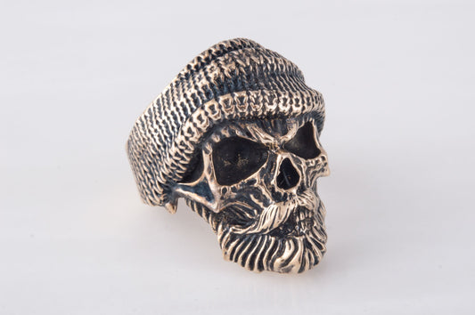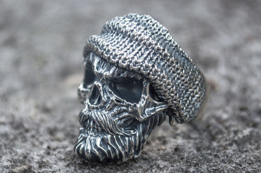 Bearded Skull Sterling Silver Unique Ring Biker Jewelry