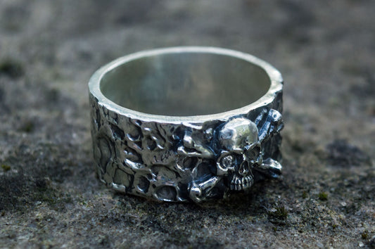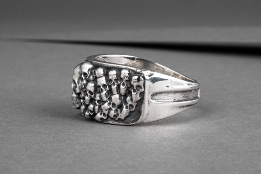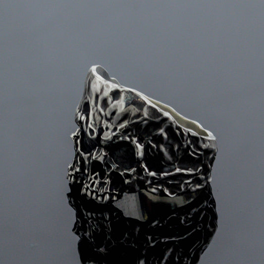 Ring with Skulls Sterling Silver Unique Handmade Biker Jewelry