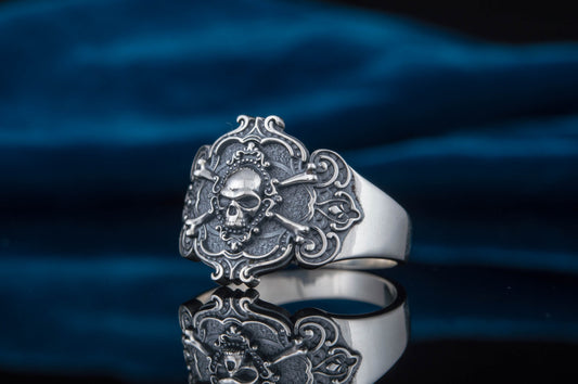 Ring with Jolly Roger Symbol Sterling Silver Unique Jewelry