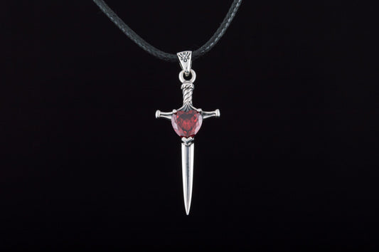 Viking Sword Pendant with Red Cubic Zirconia Sterling Silver Handmade Jewelry