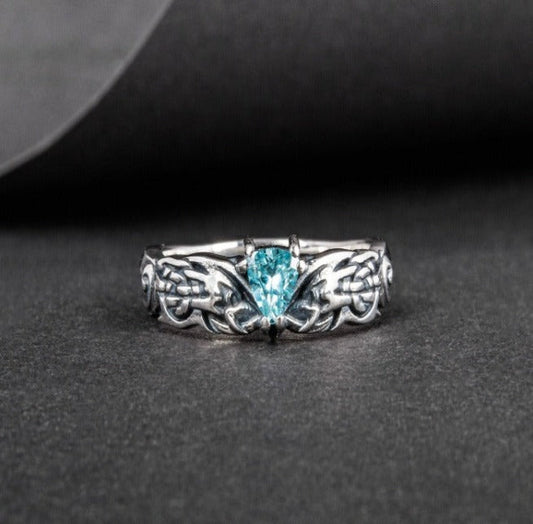 Viking Ring with Blue Gem Sterling Silver Jewelry