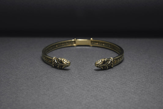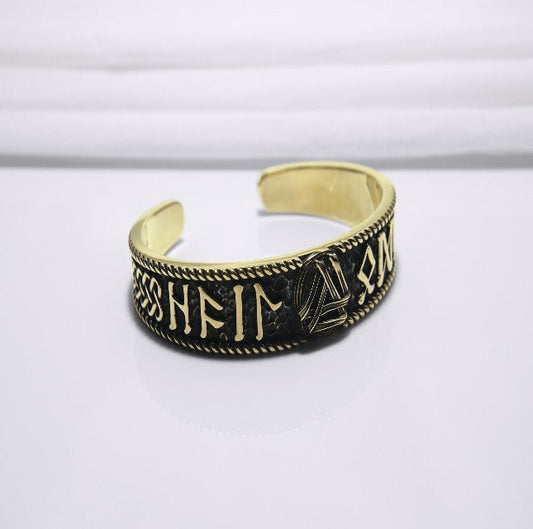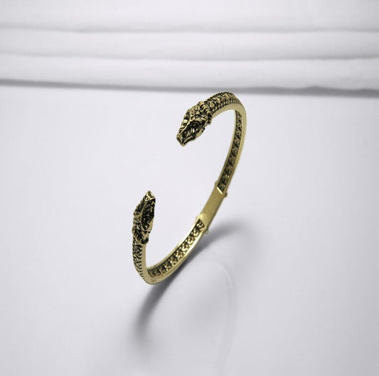 Bronze Jormungandr Viking Bracelet with Elder Futhark Runes