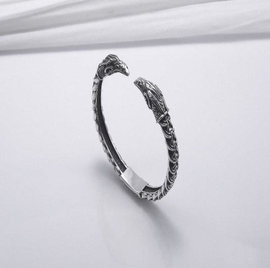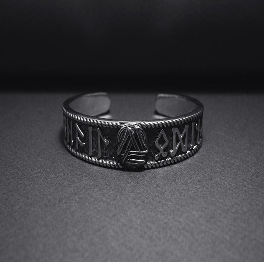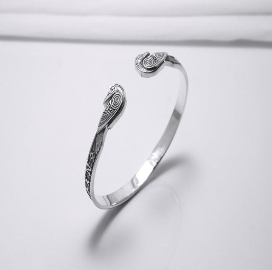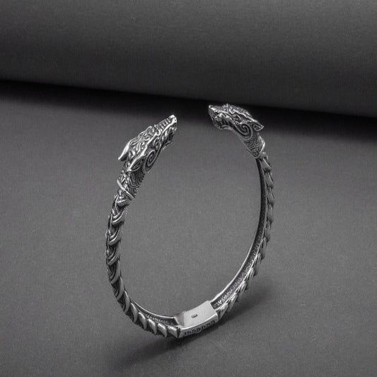 Silver Jormungandr Viking Bracelet with Elder Futhark Runes
