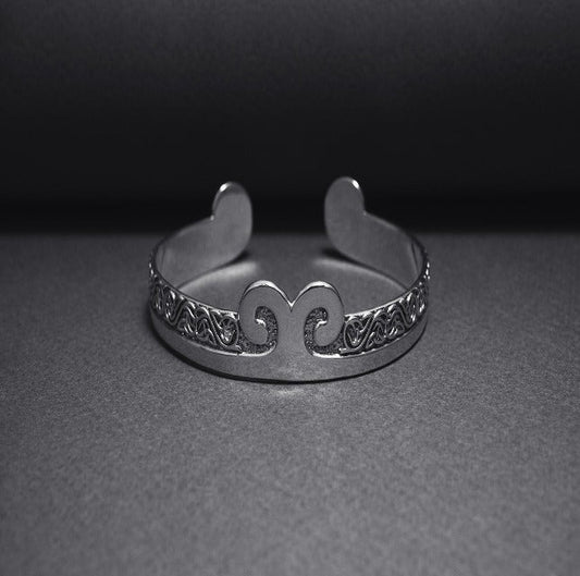Norse Ornament Ring with CZ Sterling Silver Handmade Viking Jewelry