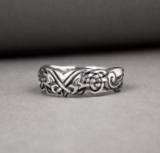 Ring with Ornament Sterling Silver Handcrafted Viking Jewelry